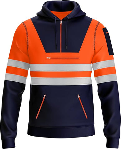 Mens New Hi Vis Safety Work Yellow Orange Pullover Hoodie High Viz Reflective Tape Hoodie High Visibility Sweatshirt Multi Zipped